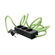 Extension cord with 3-way socket and 2,5 meter textile cable. Cable type H05VV-F 3g1,5. Schuko plug, Danish plug. Please see below for colour options for the textile cable.