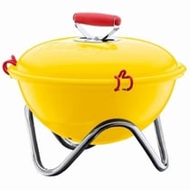 The FYRKAT Picnic charcoal grill is a perfect fit for terraces, porches and even the back of your car so you can take your BBQ wherever the mood strikes you. Its body is made from enamel coated steel, its legs from chrome plated steel. The handle is made from heat-resistant silicone. Its diameter is just perfect for your favorite piece of meat or fish. Or sausages, for that matter. And for the health conscious among us – it grills veggies just fine as well.