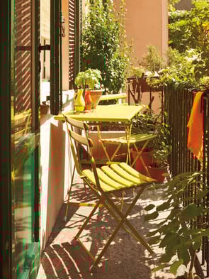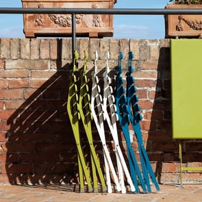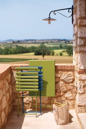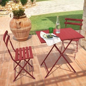 Arc En Ciel is a collection dedicated to people who want to furnish their outdoor areas, however small, in order to enjoy them to the full. It includes a chair and table featuring a fresh, eclectic design, created by the expert draftsmen of the EMU Research Centre. They are compact, so as to enable even limited, open-air spaces to be furnished. No detail has been overlooked in the manufacture of this practical, hard-wearing collection: the table is made of solid sheet metal, which has been treated to withstand any kind of weather conditions. The colours are new and follow the latest trends. New for 2012: two new tables, one round and one bigger, rectangular one, available in the three colours – sandy, matt sky blue and shiny aluminium. The new packaging contains two chairs and a table. Also available in a special 12-piece package for contract use.